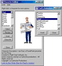 The program enables the average PowerPoint® user to create interactive presentations with characters that speak, move, and gesture. That's all well and good, but most of us aren't programmers. The good news is with Vox Proxy you don't have to be.